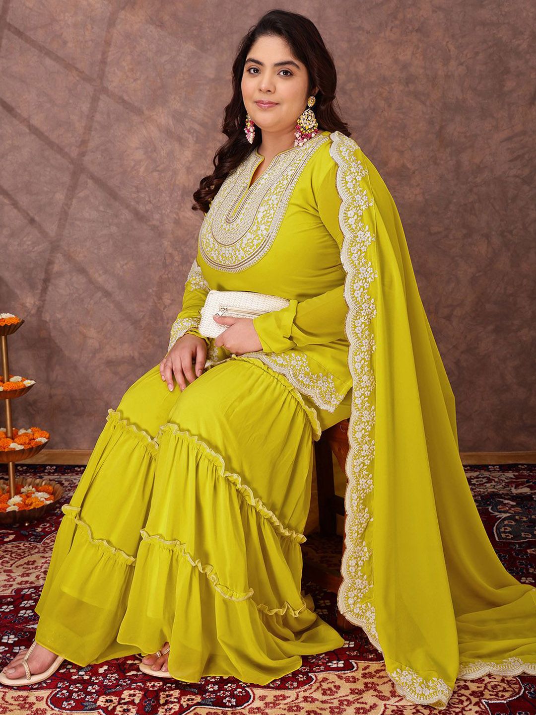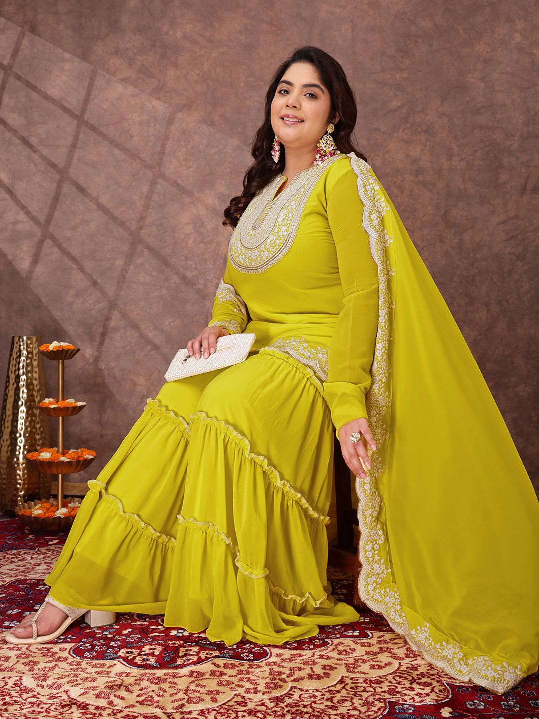 Yellow yoke design Kurta with Sharara with dupatta