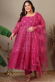 Dhiyona IN Women Plus Size Floral Embroidered A-Line Kurta with Trousers & Dupatta
