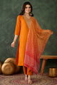 Rust and gold-toned embroidered kurta with trousers & dupatta