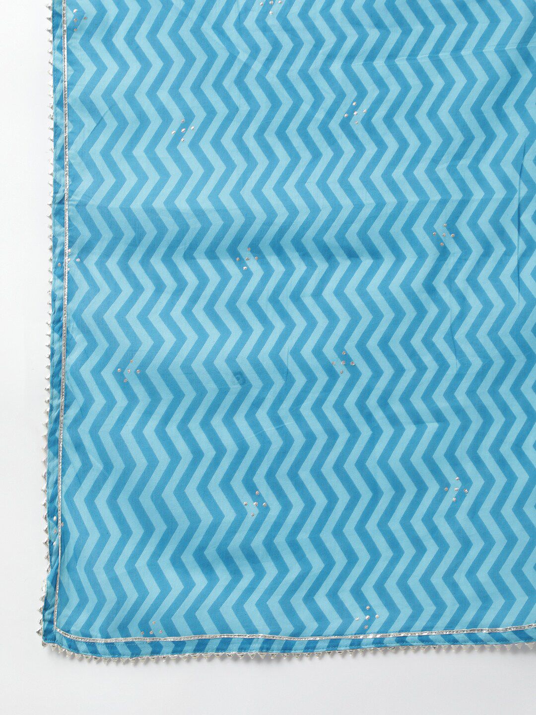 Turquoise blue & silver-toned printed Kurta with Trousers with dupatta