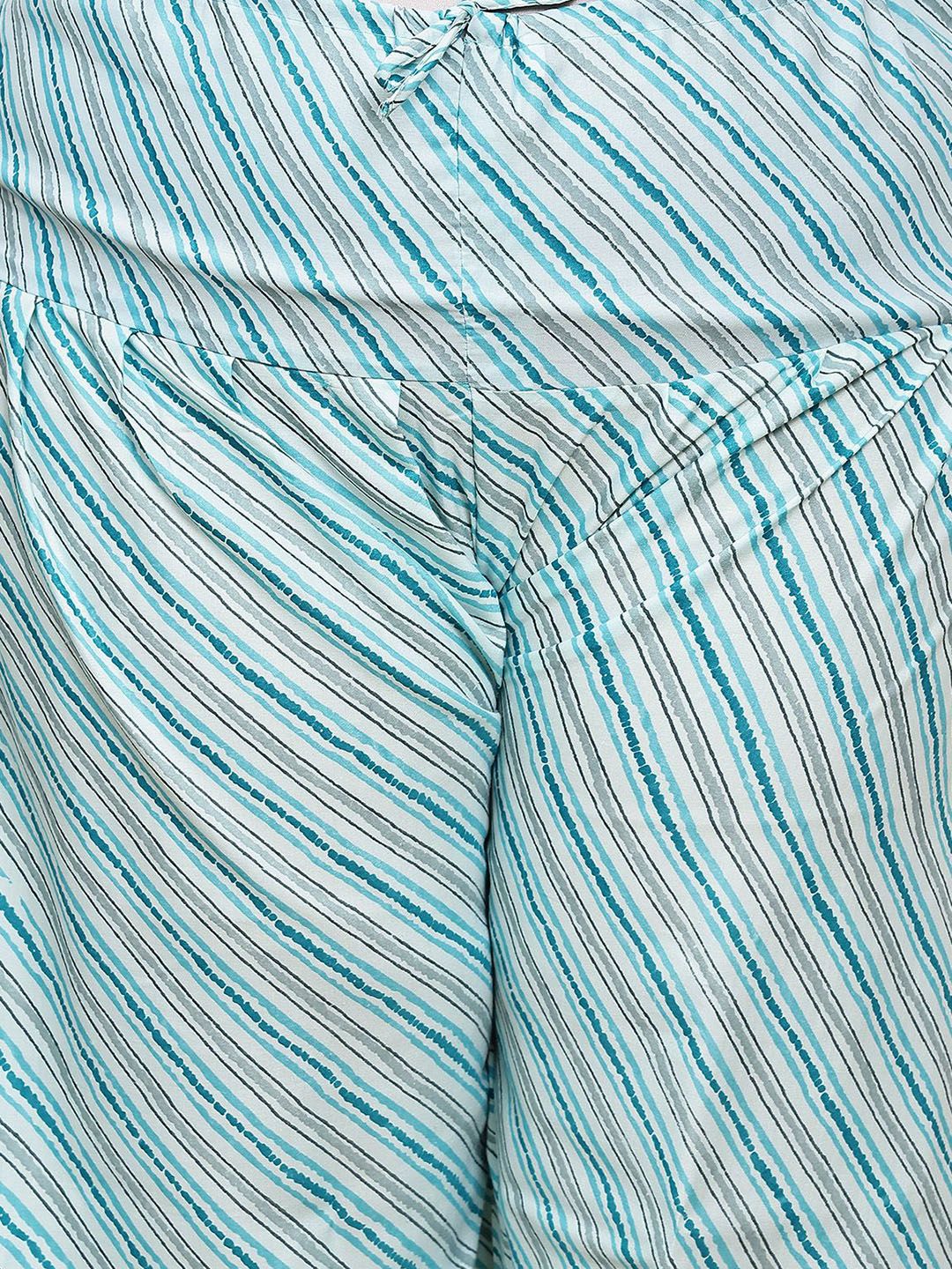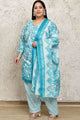 Blue and white printed kurta with salwar & dupatta