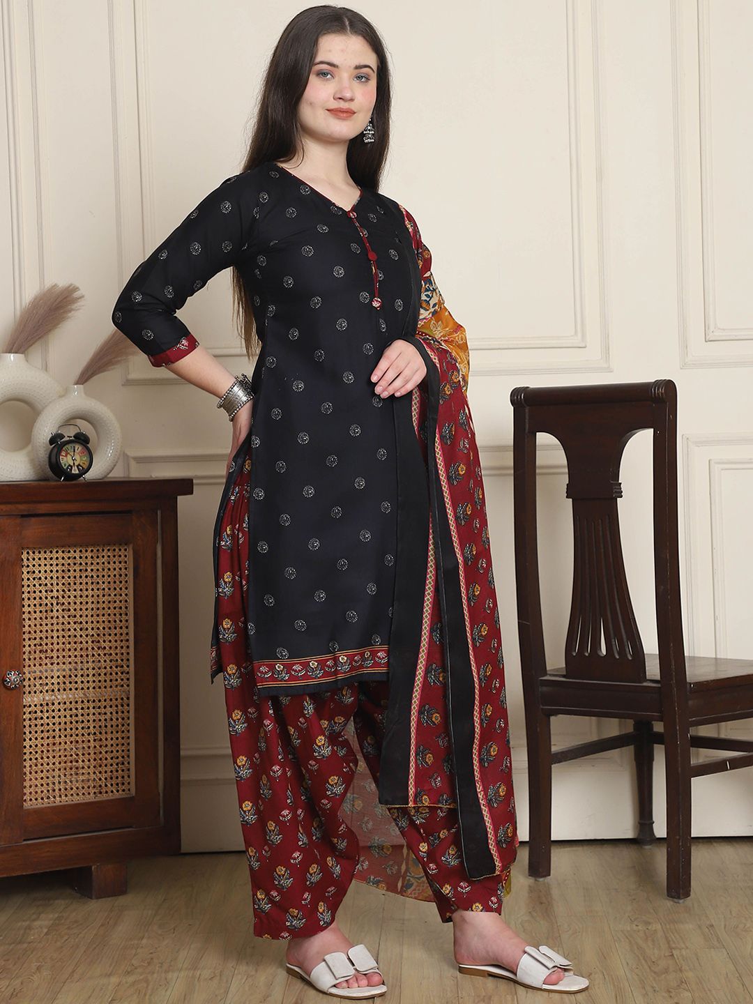 Dhiyona KL Floral Printed V-Neck Straight Kurta With Patiala & Dupatta