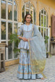 Sky Blue Rayon Kurti Sharara with Dupatta