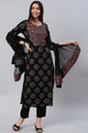 Black printed Kurta with Trousers with dupatta