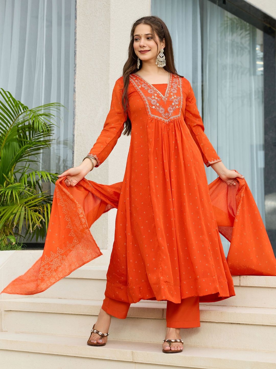 Orange embroidered Kurta with Trousers with dupatta