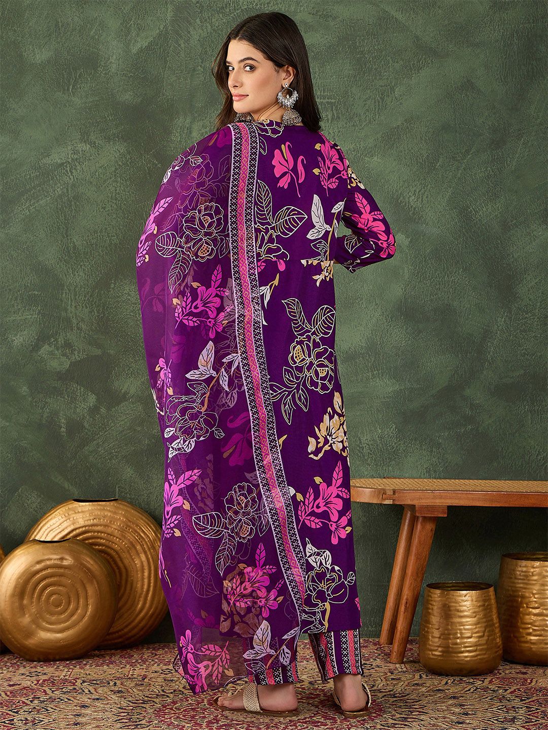 Dhiyona KL Women Floral Printed Tiered Kurta with Trousers & With Dupatta