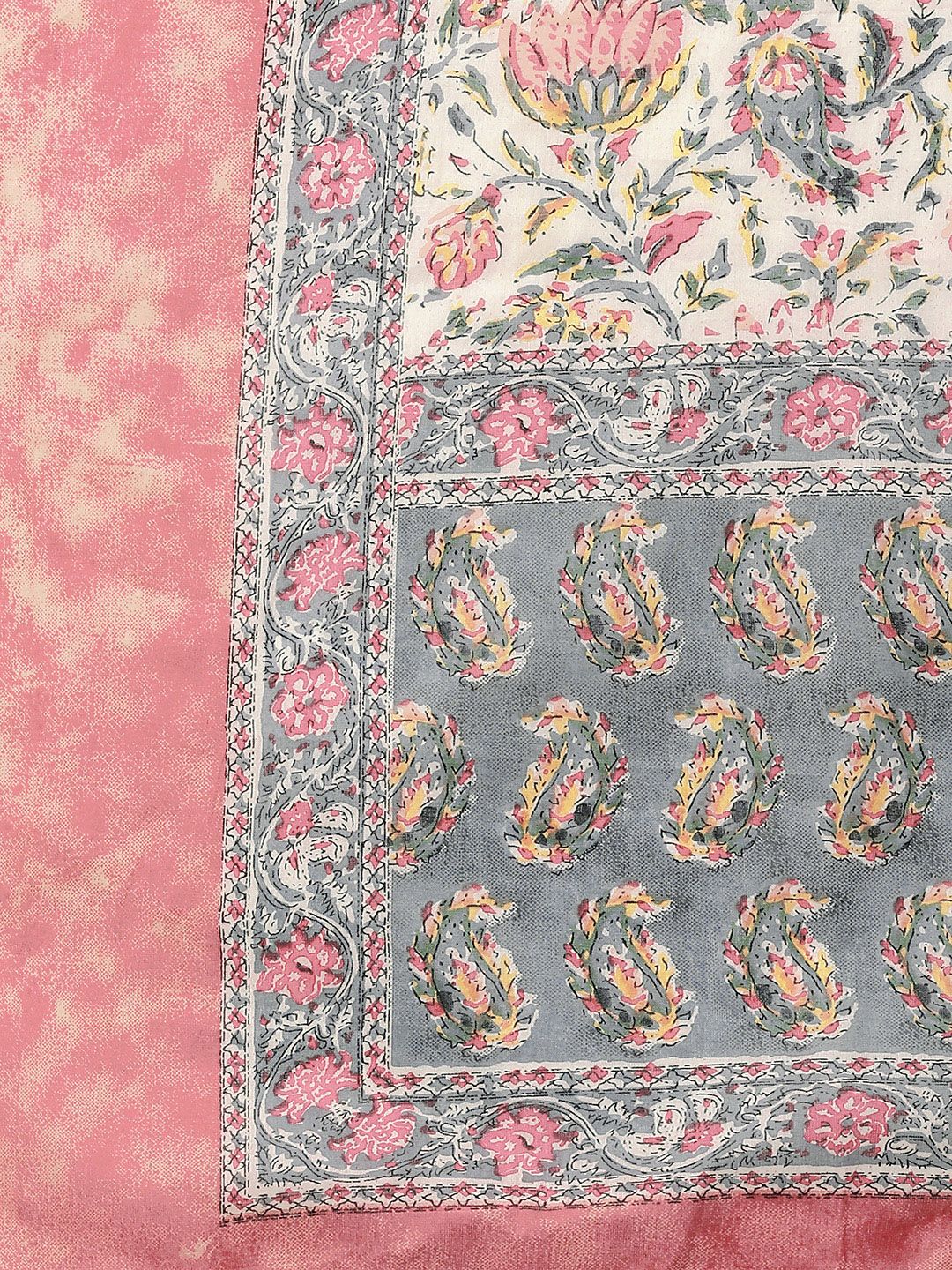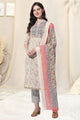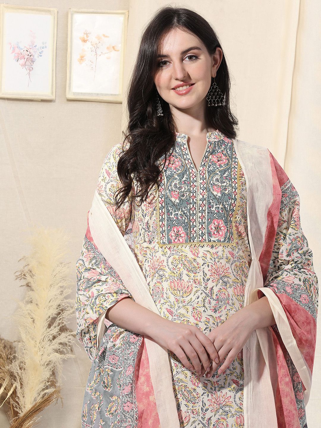 Dhiyona KL Women Plus Size Cream Ethnic Pure Cotton Kurta with Trousers & Dupatta