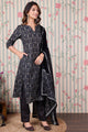 Navy blue printed Kurta with Trousers with dupatta