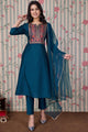 Dhiyona OD Blue Ethnic Motifs Embroidered Zari Kurta With Trousers & Dupatta