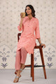 Dhiyona OD Coral & White Floral Printed Mandarin Collar Kurta With Palazzos