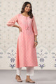 Dhiyona OD Ethnic Motif Printed Tie Up Neck A-Line Kurta With Trousers