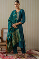 Teal green & Gold toned embroidered Kurta with Trousers with dupatta