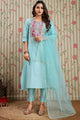 Dhiyona OD Floral Embroidered Notch Neck Kurta With Trousers And Dupatta