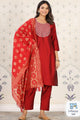 Dhiyona OD Floral Embroidered Sequined Straight Kurta & Trousers With Dupatta
