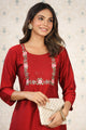 Red & pink embroidered kurta with trousers