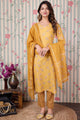 Mustard yellow printed Kurta with Trousers with dupatta