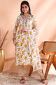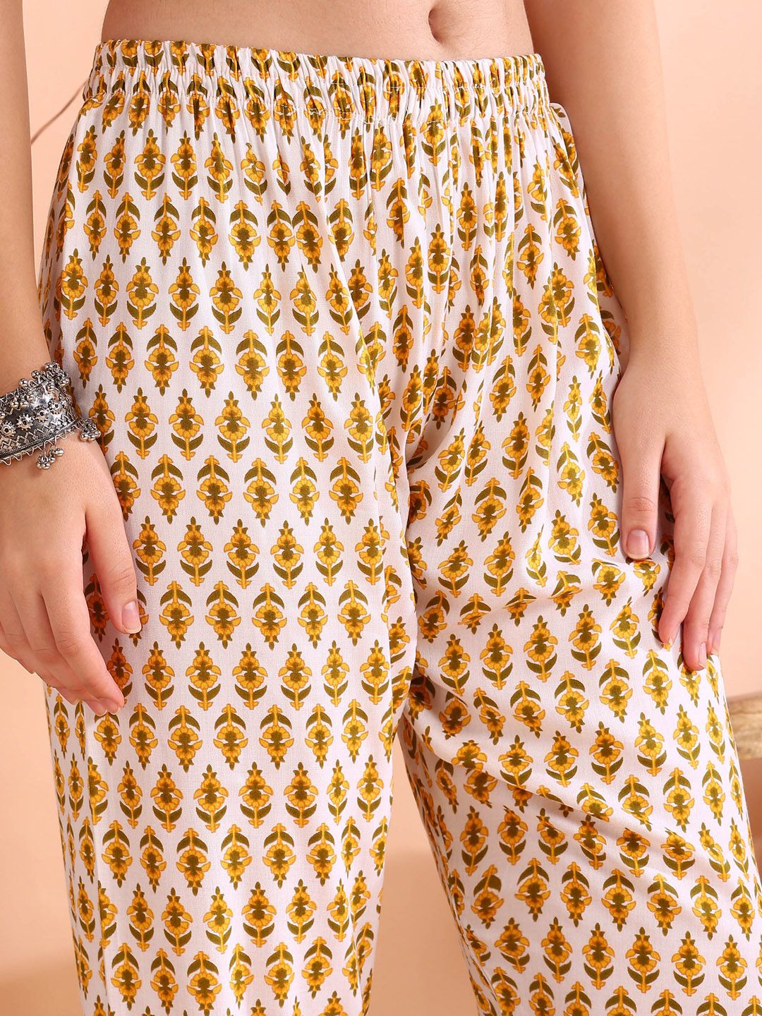 Mustard yellow, white & green printed Kurta with Trousers with dupatta