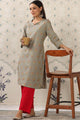 Dhiyona OD Grey & Red Floral Printed Notched Neck Kurta With Palazzos