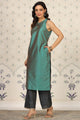 Green & navy blue solid Kurta with Palazzos