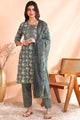 Dhiyona OD Printed Mirror Work Pure Cotton Kurta With Trousers & Dupatta