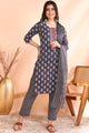 Dhiyona OD Printed Thread Work Pure Cotton Kurta With Trousers & Dupatta