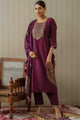 Dhiyona OD Purple Ethnic Motifs Straight Kurta & Trousers With Dupatta