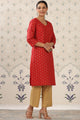 Red & beige printed Kurta with Palazzos