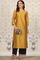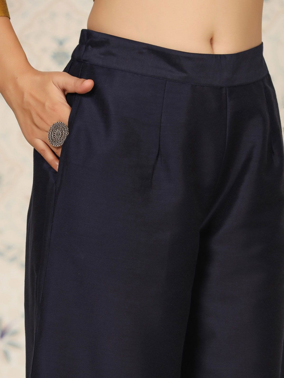 Mustard yellow & navy blue solid Kurta with Palazzos