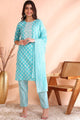 Dhiyona OD Thread Work Pure Cotton Straight Kurta with Trousers & Dupatta