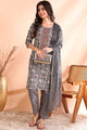 Grey & red ,beige printed Kurta with Trousers with dupatta