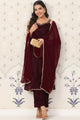 Dhiyona OD Velvet Straight Kurta & Trousers With Dupatta