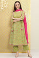 Dhiyona OD Women Green Ethnic Motifs Printed Panelled Pure Cotton Kurta with Trousers & With