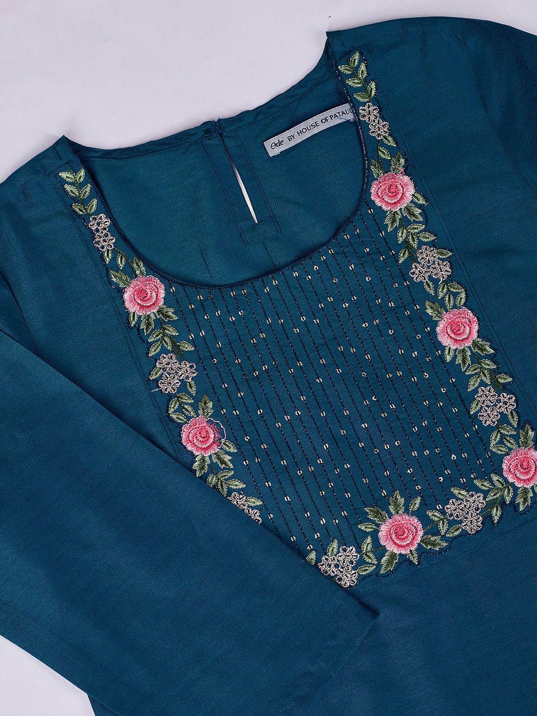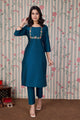 Dhiyona OD Women Round Neck Three-Quarter Sleeves Embroidered Straight Kurta