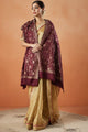 Purple and gold-toned ethnic motifs woven design viscose rayon shawl has a solid border