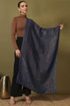 Blue and gold-toned checked woven design woollen shawl has a fringed border