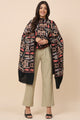 Black,red & beige pure wool embroidered shawl, has fringed border