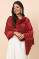 Maroon ethnic motifs embroidered shawl, has fringed border