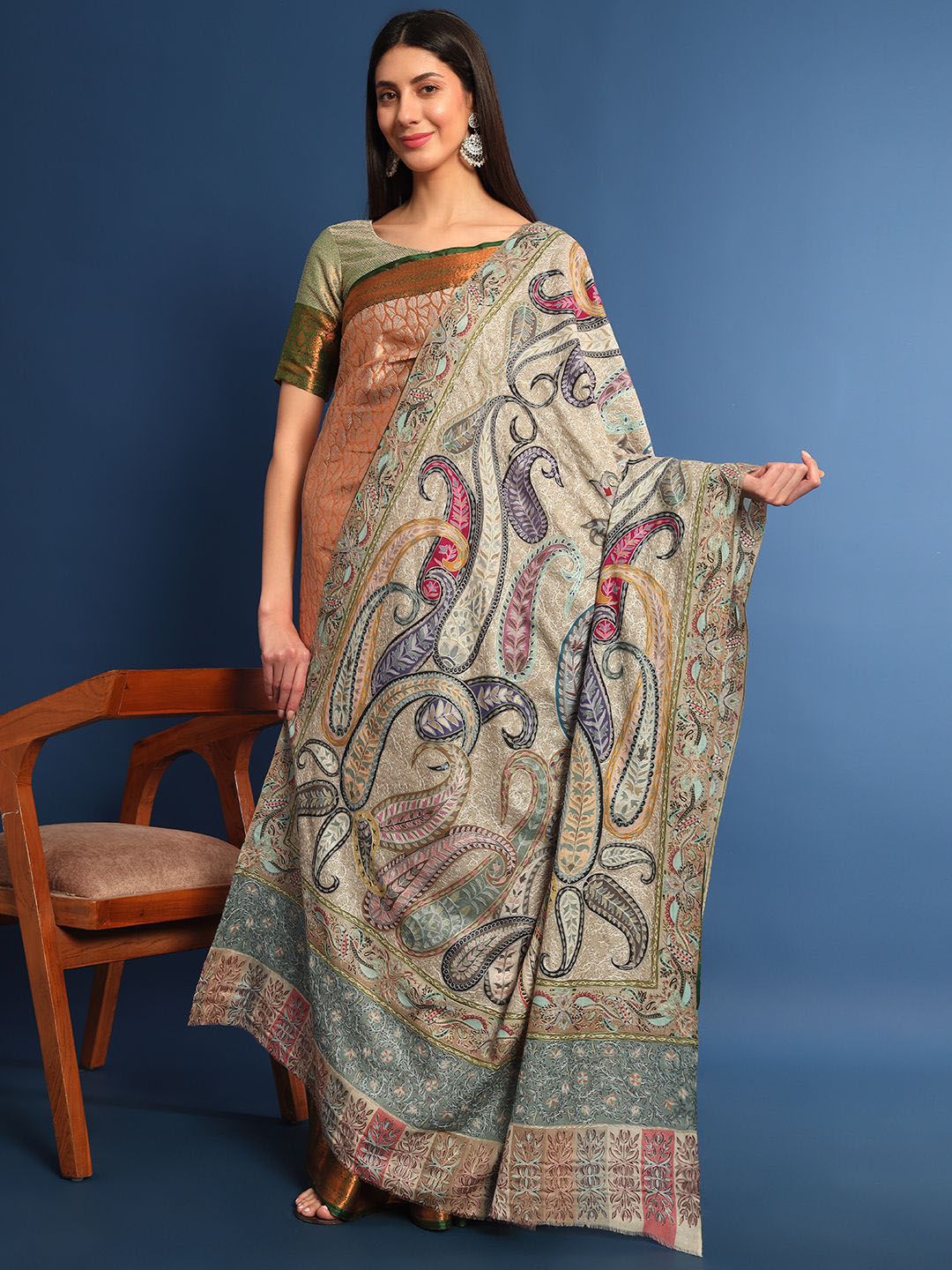 Dhiyona PA Ethnic Motifs Embroidered Woollen Shawl