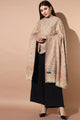 Beige and orange ethnic motifs jamawar woven design shawl, has a fringed border