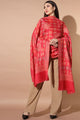 Dark pink jamawar ethnic motifs woven design shawl, has a fringed border