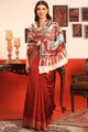 White, blue and red ethnic motifs embroidered woollen shawl has a fringed border