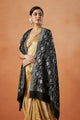 Black and silver-toned ethnic motifs woven design viscose rayon shawl has a solid border