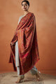 Maroon and blue ethnic motifs woven design woollen shawl has a woven design border
