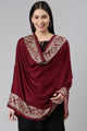 Maroon embroidered Shawl has taselled border