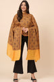 Mustard yellow embroidered woven shawl, has fringed along with border