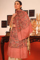 Peach, beige and grey other embroidered woollen shawl has a fringed border