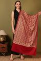 Maroon and cream floral embroidered woollen shawl has a fringed border