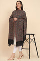 Black and beige kaani floral woven design shawl, has fringed along with border