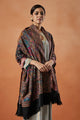Black and blue & red floral woven design woollen shawl has a fringed border