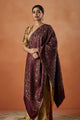 Purple and gold-toned floral woven design viscose rayon shawl has a fringed border